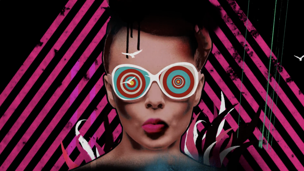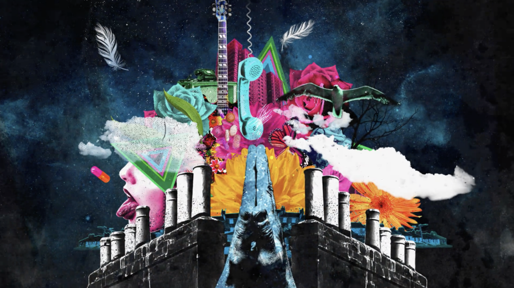 Chris designed eight different animated videos which ran through the entirety of Gallagher's performance. The films used a heady mix of footage with bright saturated colours collaged together with graphic shapes and glitches.