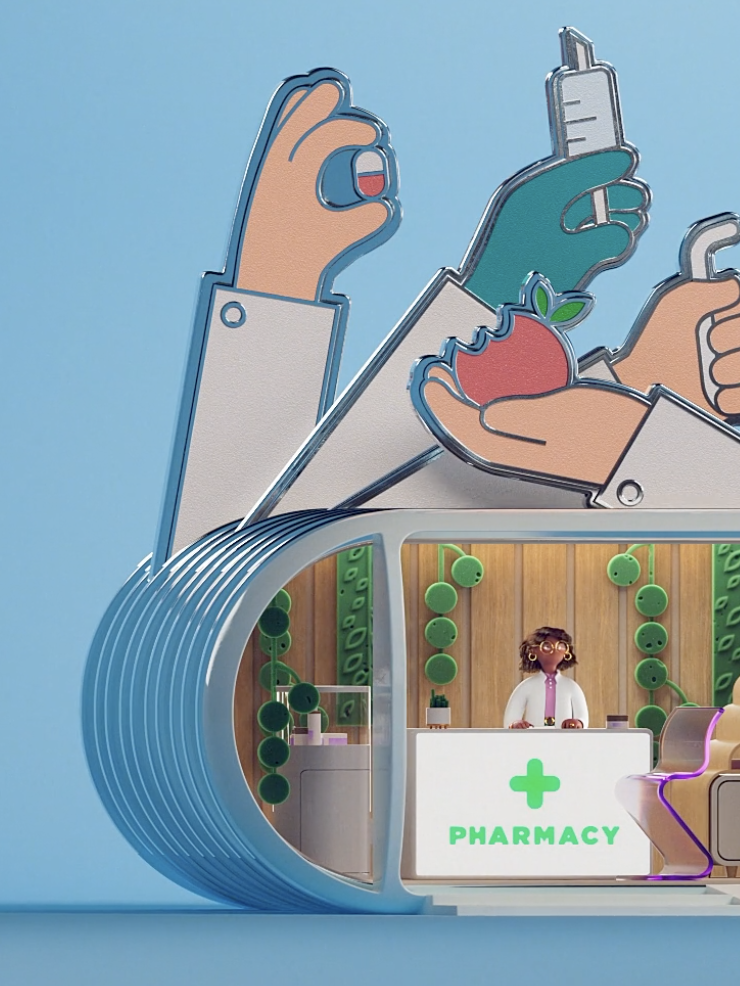 Imagine the pharmacy of the future... With their partners at Rowa and GGH MullenLowe, Sehsucht did just that and a bunch more. Together, they created a playful, tangible world full of visual metaphors and fun stories.
